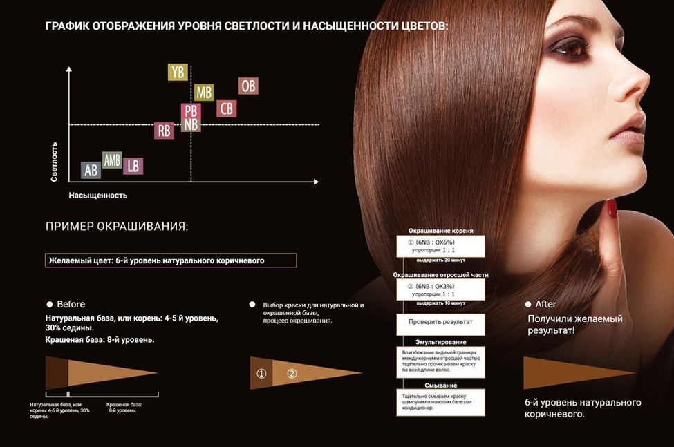 В основе красителя лежит спектральный коричневый цвет. Благодаря инновационной технологии красителя удается добиться стойкого, глубокого и насыщенного цвета, который будет держаться на волосах от 4 до 8 недель, и даже на 8-й неделе полностью не вымоется.
