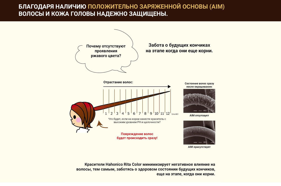 В состав красителей входит инновационный комплекс AIM - жидкокристаллическая основа, идентичная клеточным мембранам волоса (СМС), которая в процессе окрашивания реконструирует поврежденную структуру волоса.